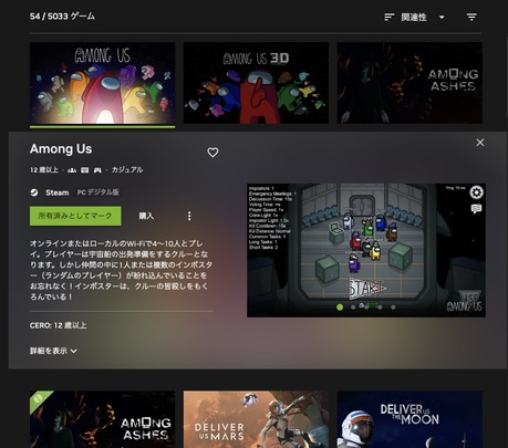 Among Usのゲームタイトルを選択し、「所有済みとしてマーク」という項目を選択してください。