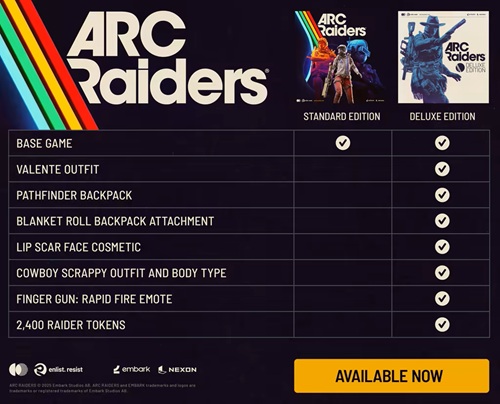 ARC Raidersの通常版とデラックスエディション版の主な相違点は、スキンやトークンなどのコスメティック・消費アイテムの付属です。
