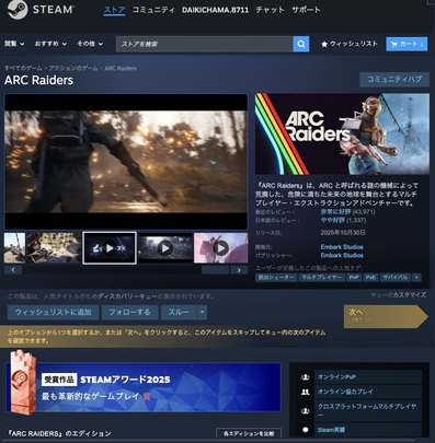登録完了後は、Steamプラットフォームにログインして、ARC Raidersの購入手続きを進めてください。