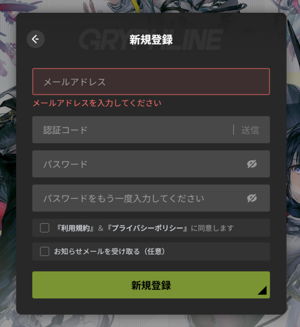 メールアドレスやパスワードといった必要情報をすべて入力すれば、新規登録が完了します。