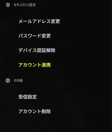 2. アカウント管理画面で「アカウント連携」を選ぶ