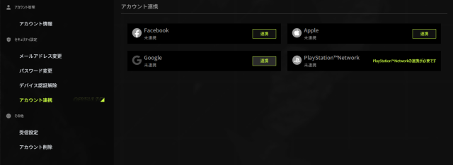 アカウント管理ページに切り替わったら、左メニューの「セキュリティ設定」内にある「アカウント連携」をクリックしてください。