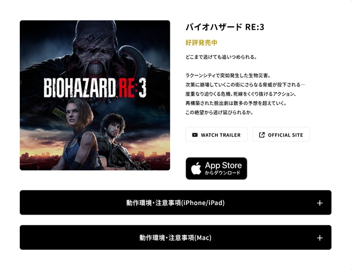 上記がApple製デバイスへの対応を果たしているバイオハザードシリーズのタイトルです。