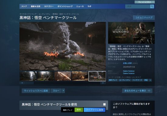 『黒神話 悟空』には専用のベンチマークツールが用意されており、ゲーム購入前に現在のPCでの動作環境を確認することが可能です。