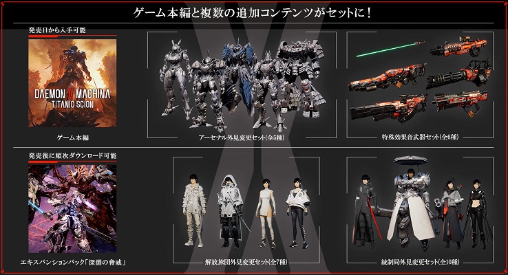 通常版とデラックスエディションの違いは、主にスキンなどの外観要素のみとなっており、追加コンテンツについてはDLCでも購入可能なミッション追加パックのみで、強力なアイテム等は含まれていません。