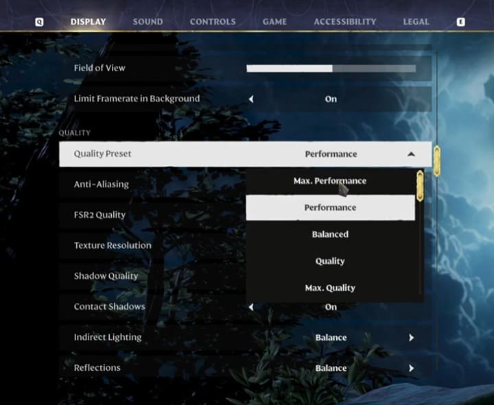 ただし、「Anti-Aliasing」や「Texture Rsolution」といった要素はゲームの視覚的没入感に直接関わる重要な部分なので、これらは「Balance」設定を維持することをお勧めします。