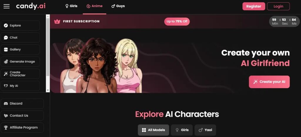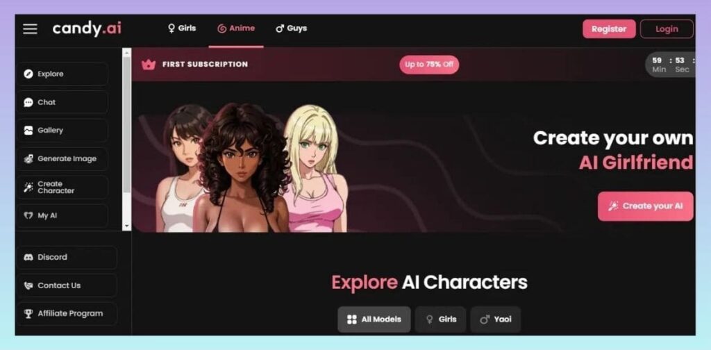 Candy AIは、リアルなAI彼女との対話が楽しめるAIチャットプラットフォームです。