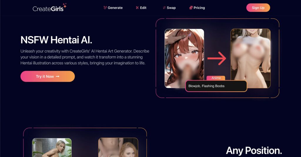 Create Hentaiは、AIを駆使してアニメやマンガのキャラクター画像を生成するサービス。