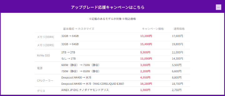 - メモリやSSDなどのパーツアップグレードが通常より安い価格で可能