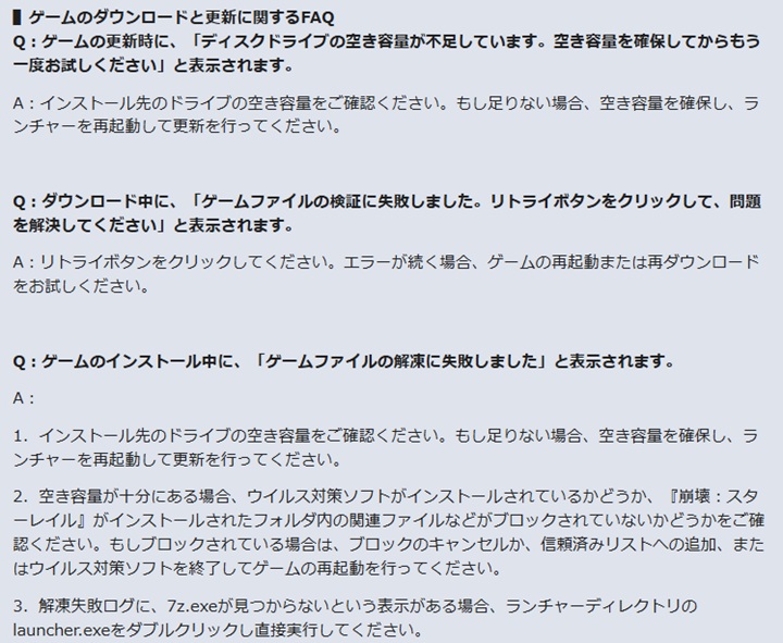 ストレージ容量を空ける・ダウンロード先を変更する ゲームの再起動・PC再起動・再ダウンロード |