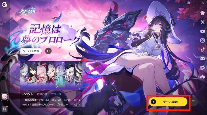 インストール完了後、ボタンの表示が「ゲーム開始」に変化します。