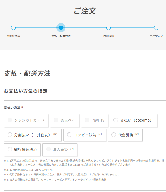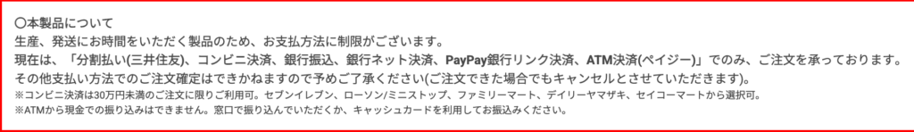 クレジットカード・楽天ペイ・PayPay・法人売掛といった選択肢が利用できない