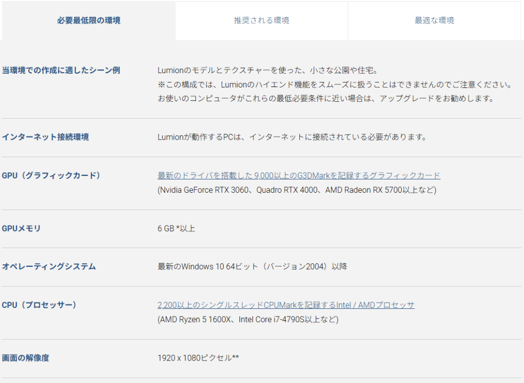 前提条件として、LumionはApple製のMacパソコンを公式サポート対象としていません。