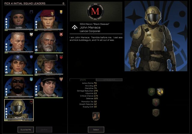 未実装のキャラクターも含め、現在ゲームに実装されているすべての分隊長の中から初期リーダーを自由に選ぶことができるようになります。