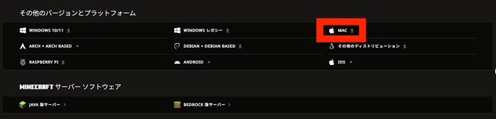 Java版は公式にmacOSへ対応しており、マインクラフト公式サイトからインストールできます。
