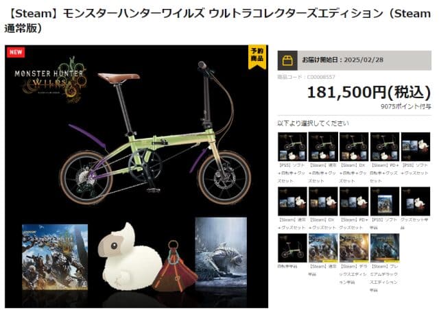 特に、ウルトラコレクターズエディションに含まれるセクレト折りたたみ自転車は、モンハンワイルズの世界観を日常に取り入れられる貴重なアイテムです。