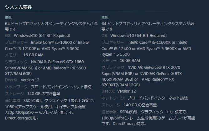 特にPC版でプレイする場合、推奨スペックを満たしているかどうかは非常に重要です。