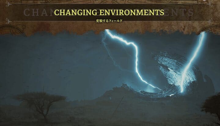 本作では、探索中にリアルタイムで天候が変化する新システムが導入されました。
