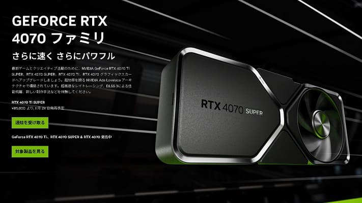 現在は最新のRTX40シリーズが主流となっており、将来的な拡張性を考慮すると、新規購入の場合はRTX40シリーズを選択することをお勧めします。