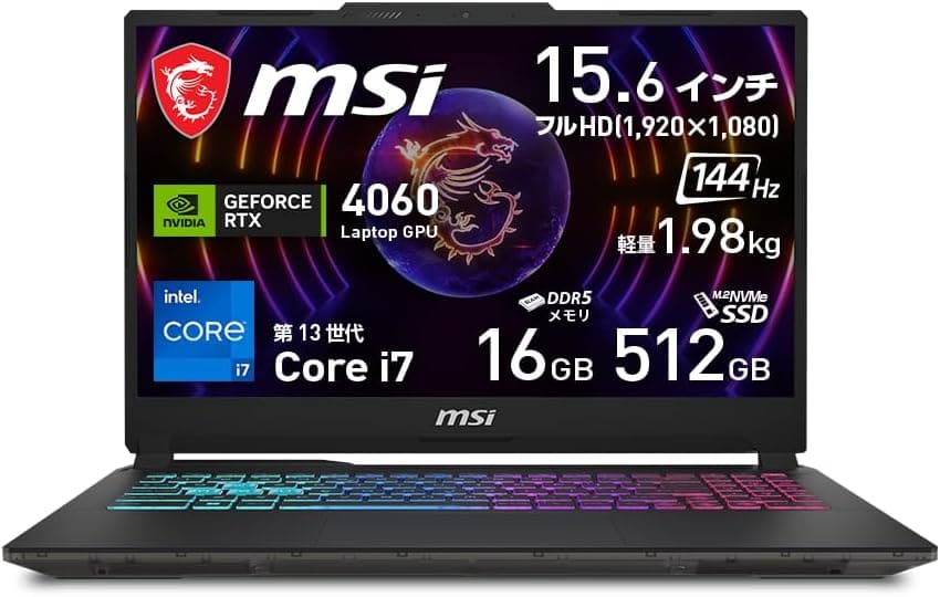 2. 軽量コンパクトな高性能モデル:MSIゲーミングノートPC RTX4060