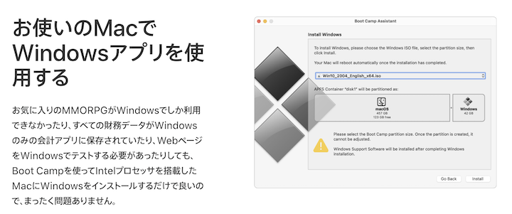 Boot CampはAppleが公式に提供しているユーティリティで、Mac上でWindows環境を構築することができます。