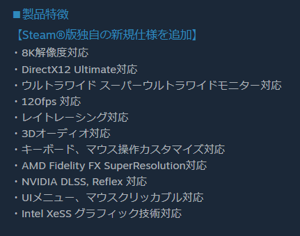 以下の機能に対応することで、PCならではの高品質なゲーム体験を実現しています。