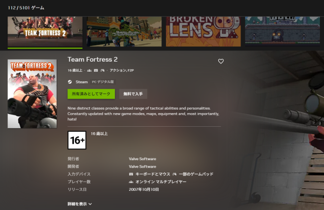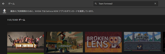 GeForce Nowアカウントにログインし、『Team Fortress 2』と検索しましょう。