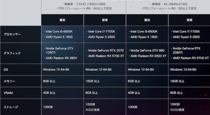 『鉄拳8』の公式推奨動作環境では、ストレージデバイスとしてSSDの使用が指定されています。