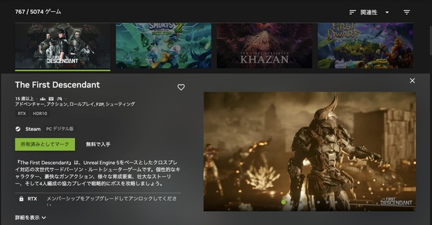 The First DescendantはGeForce Nowのサポート対象となっているため、このサービスを利用すればMac環境でもプレイが可能です。