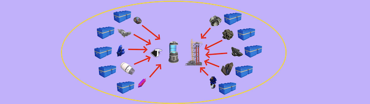 周辺エリアに存在するコンテナに格納されている素材を、建設作業やクラフト実行時に自動で供給できるようにするMODです。