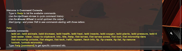 Enterキー(キーバインディングは変更可能)によってコマンド入力画面を呼び出し、「/help」や「/spawn」といったコマンドをダイレクトに実行できるようにするMODです。