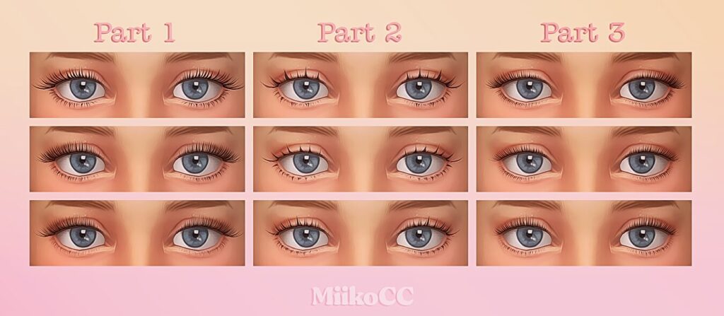 CurseForgeで提供されているEyelashes~Part 1, 2 and 3は、『The Sims 4』用の高品質なまつげカスタムコンテンツセットです。