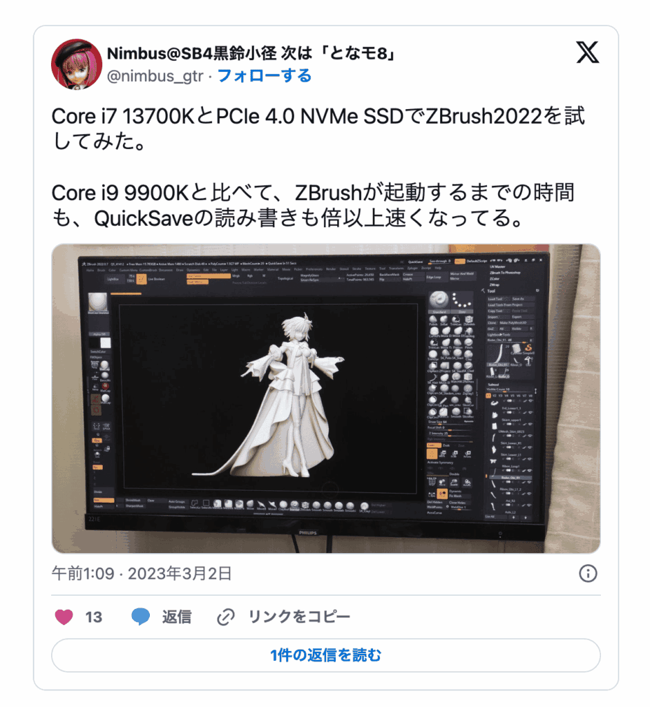 このモデルは13万円台という比較的リーズナブルな価格でありながら、『ZBrush』をスムーズに動かせます。